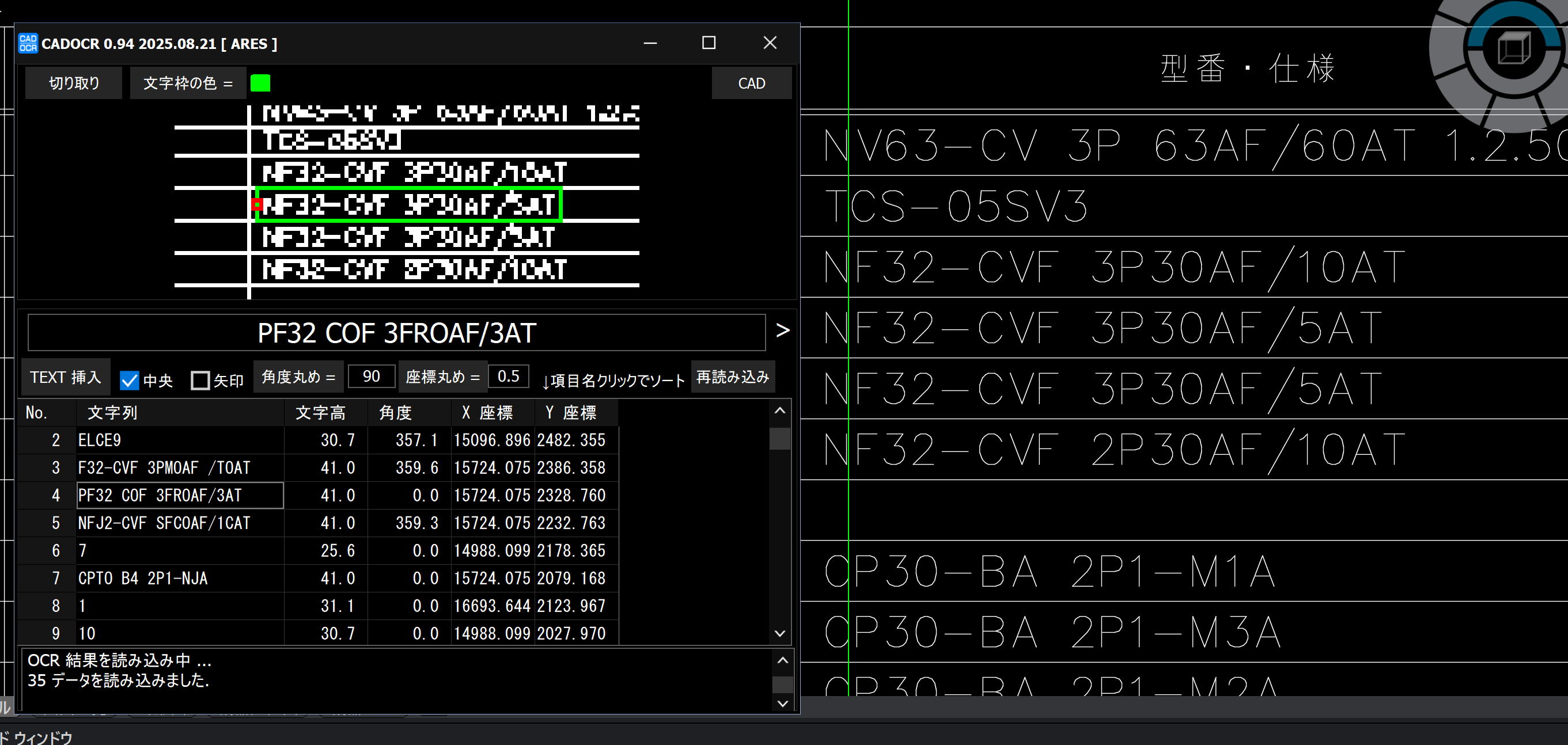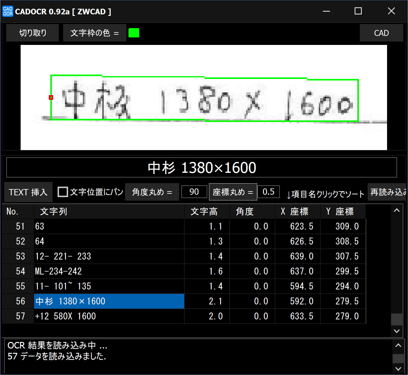 キャプチャ画像と、OCR 文字を比較しながら修正します。CAD 画面と比較するよりは、便利です。