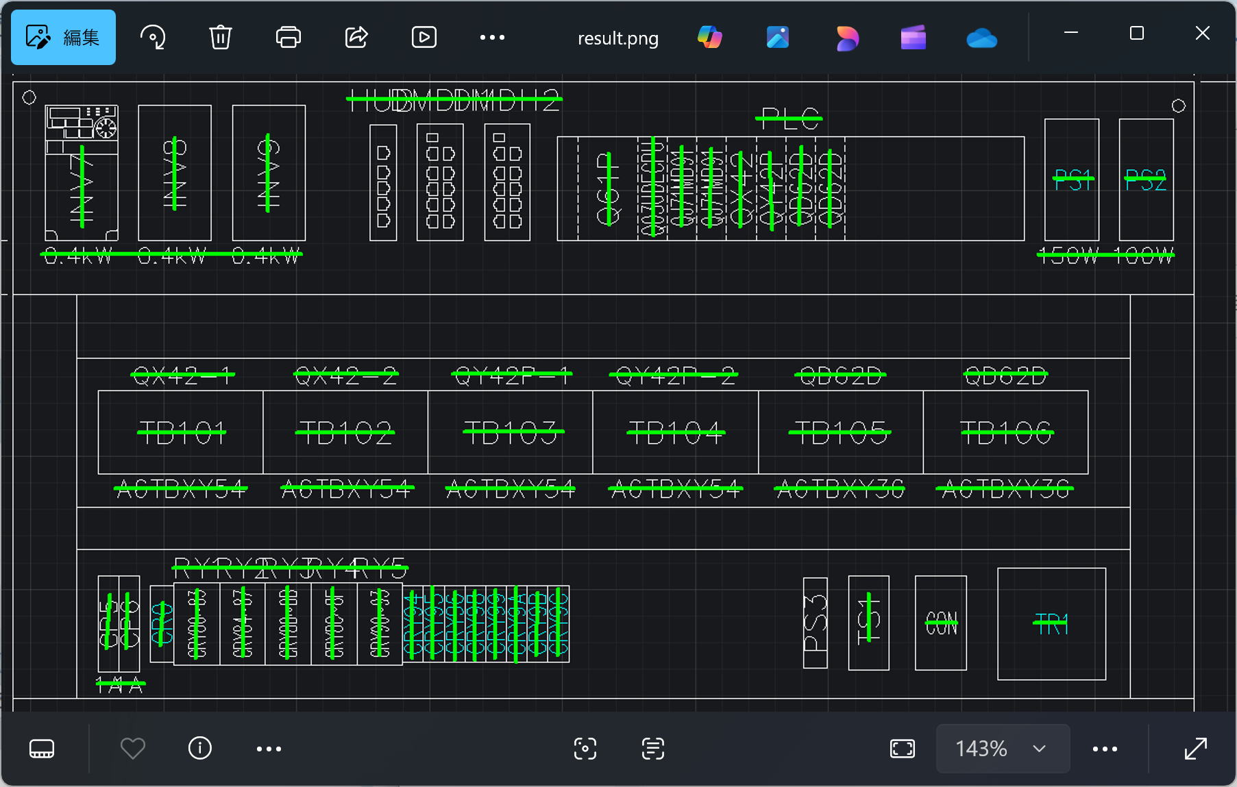 たとえば、「画像確認」ボタンのメニューから「CAD からの切り取り画像,,,」をクリックして、関連付けられたアプリで画像を開きます。