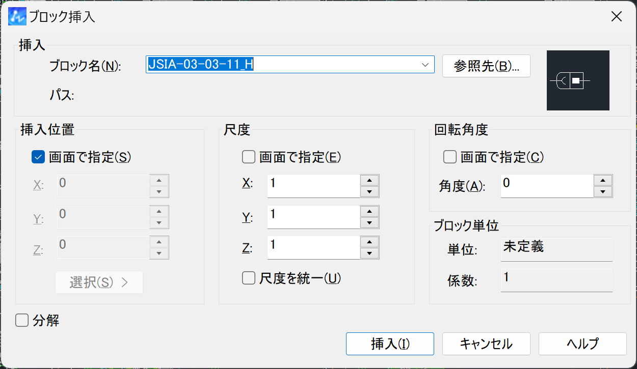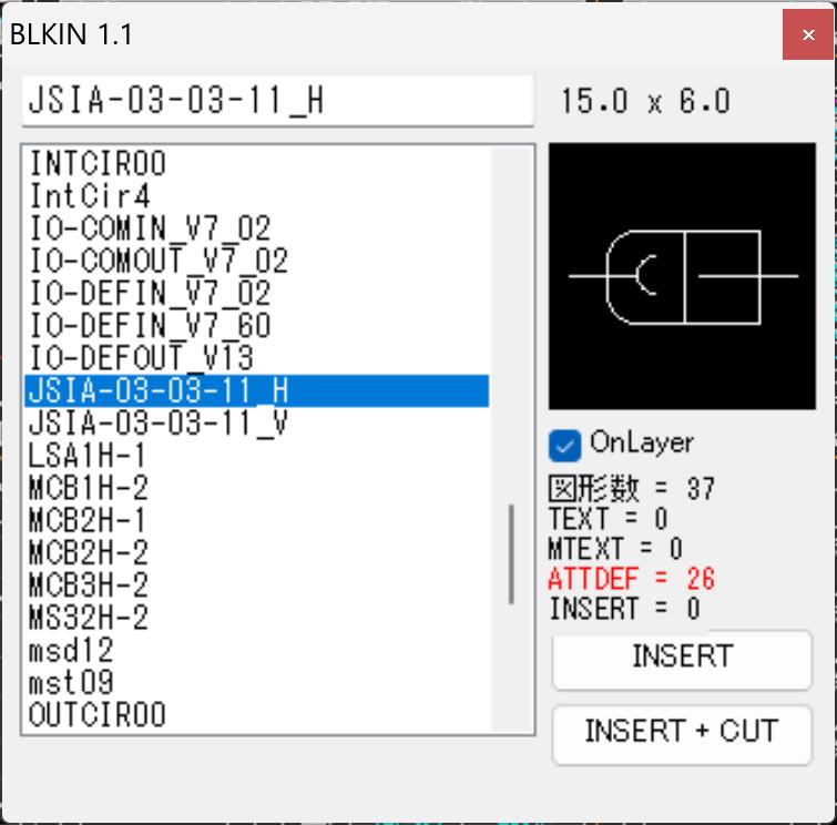 属性を含む場合は、ATTDEF = 個数が赤色で表示されます。