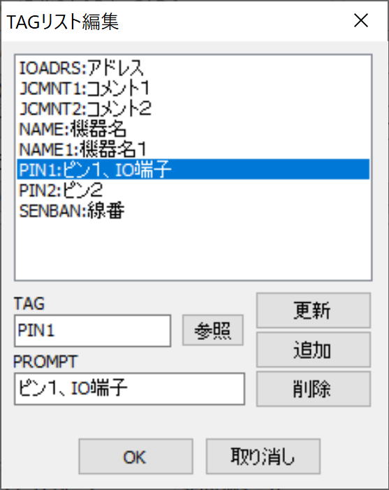 [参照]: ボタンで CAD 上の属性を指示すると、タグ名とプロンプトが取得されます。