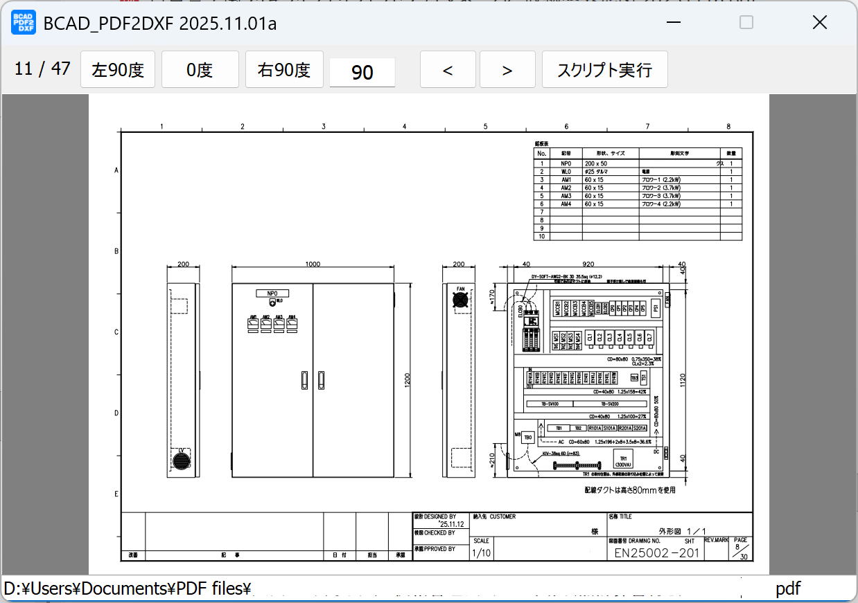 PDF ファイル名+ページ番号の R12 形式の DXF ファイルが作成されます。