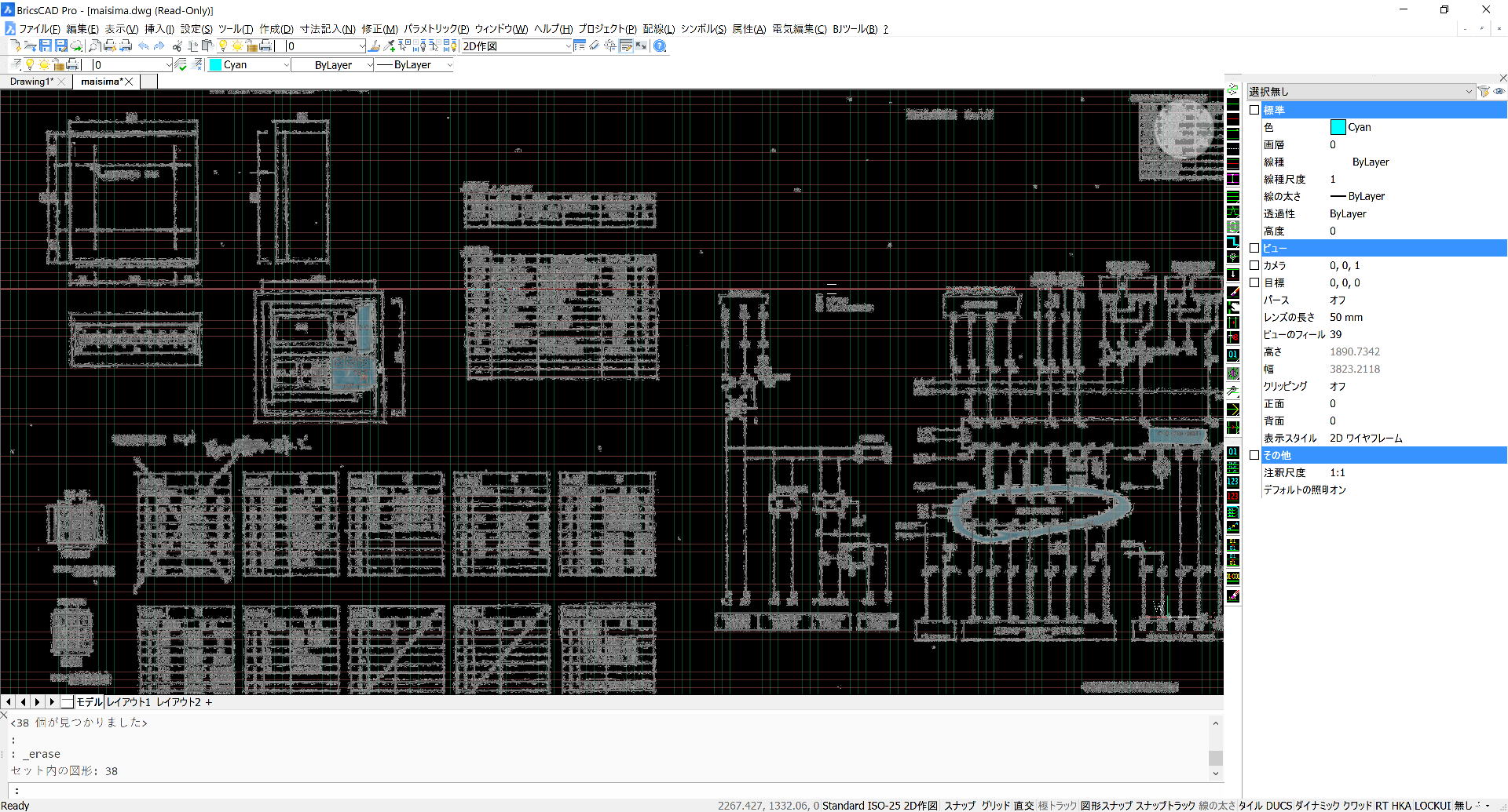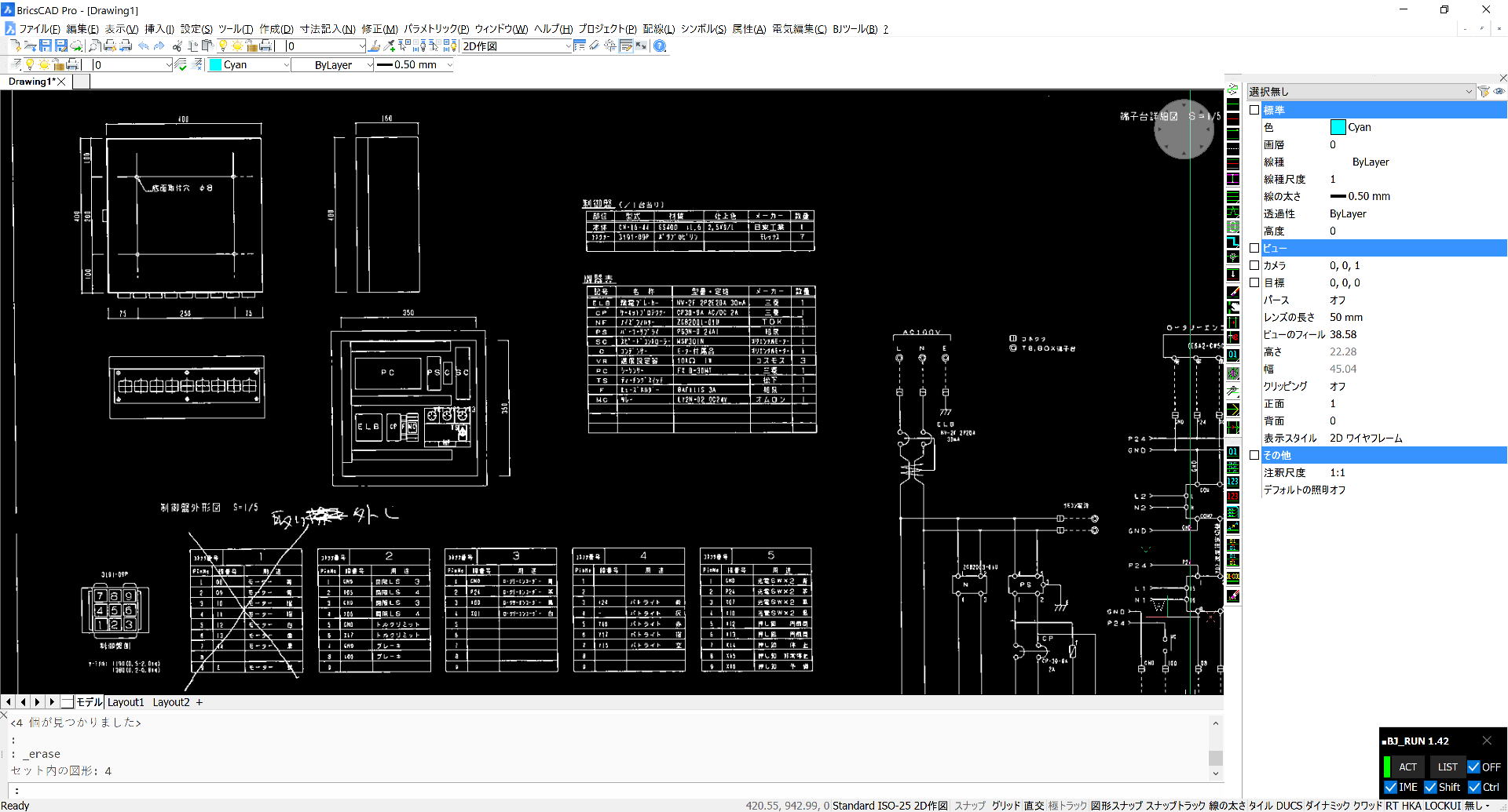 図形スナップをオフ。線の太さをオン。赤色で修正箇所を記入してそのまま修正図面として使えそうです。